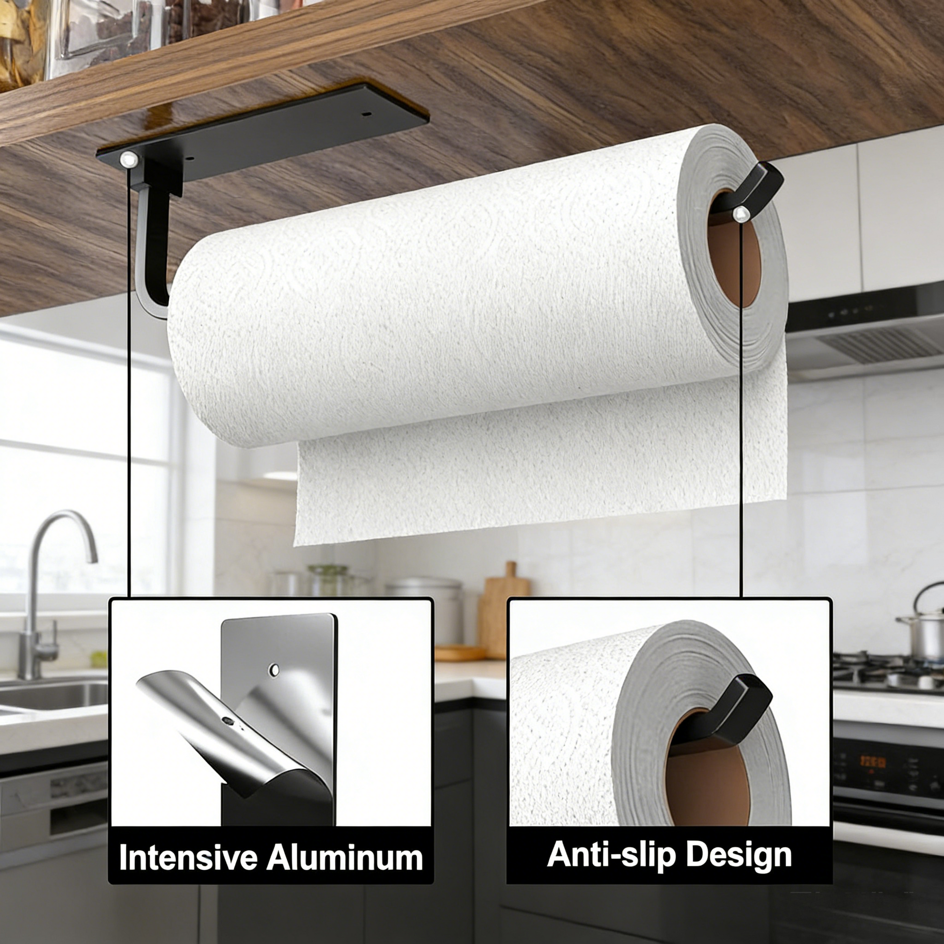 Space-Saving Dual-Mount Paper Towel Holder for Kitchen & Bathroom